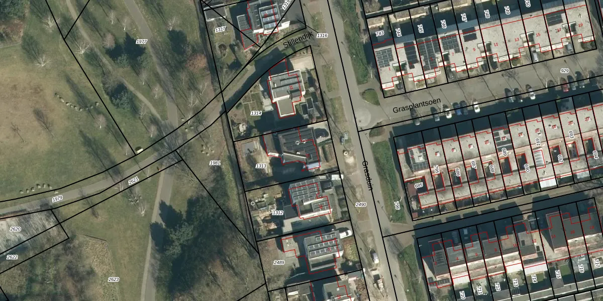 Gebruik de zoekbalk of klik op een perceel voor informatie over de adressen binnen dit perceel.
