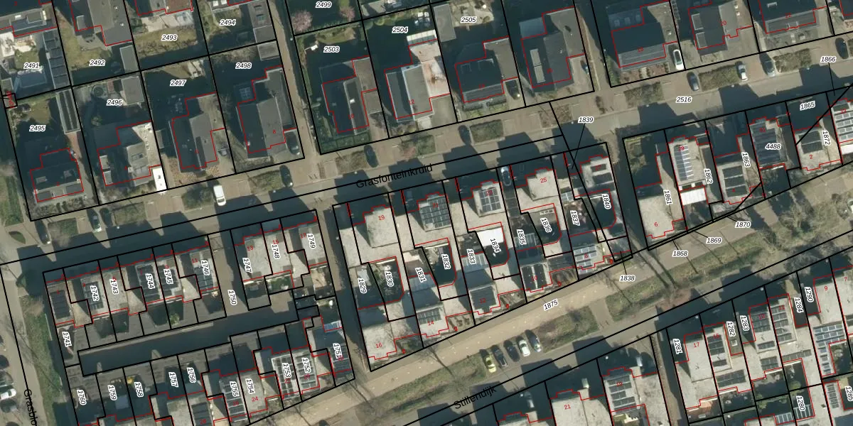 Gebruik de zoekbalk of klik op een perceel voor informatie over de adressen binnen dit perceel.