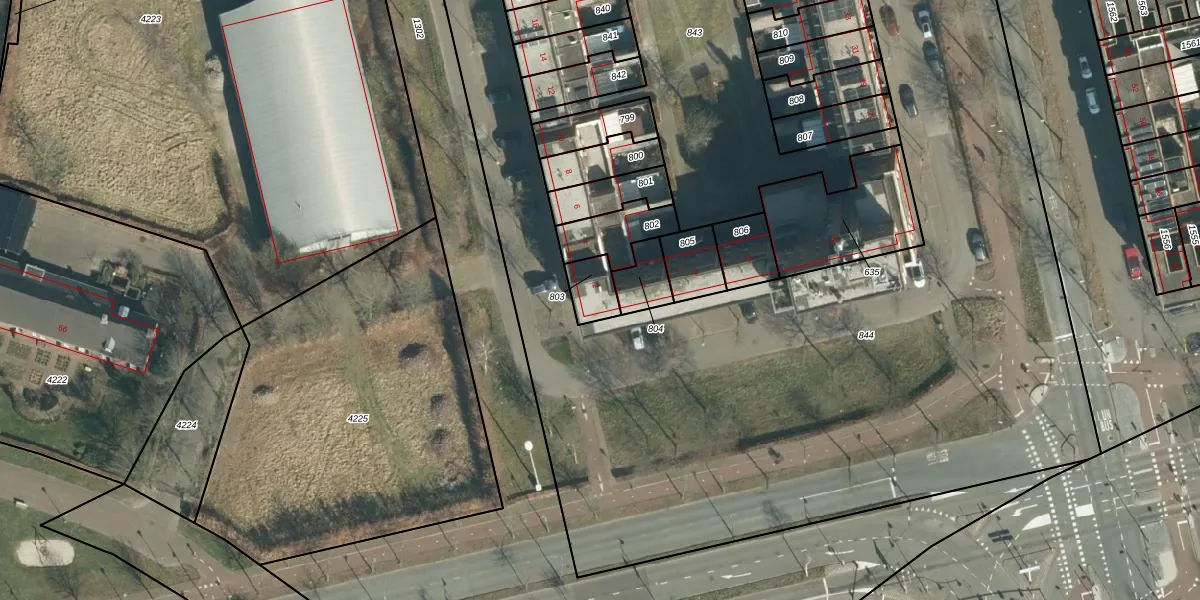 Gebruik de zoekbalk of klik op een perceel voor informatie over de adressen binnen dit perceel.