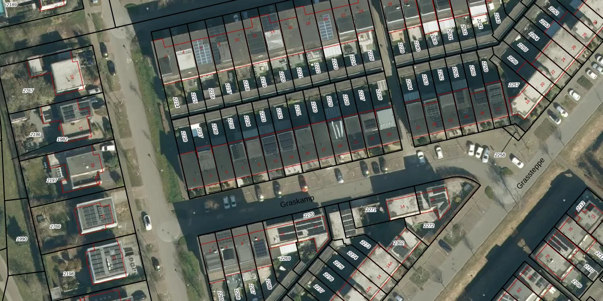 Het perceel waarop Graskamp 15 staat heeft een oppervlakte van 162 m². Dit is een middelgroot perceel. De perceeloppervlakte wordt geregistreerd door het Kadaster. Gedetailleerde informatie over de maten van dit perceel kunt u vinden in het rapport Kadastrale kaart met maatvoering van Graskamp 15.