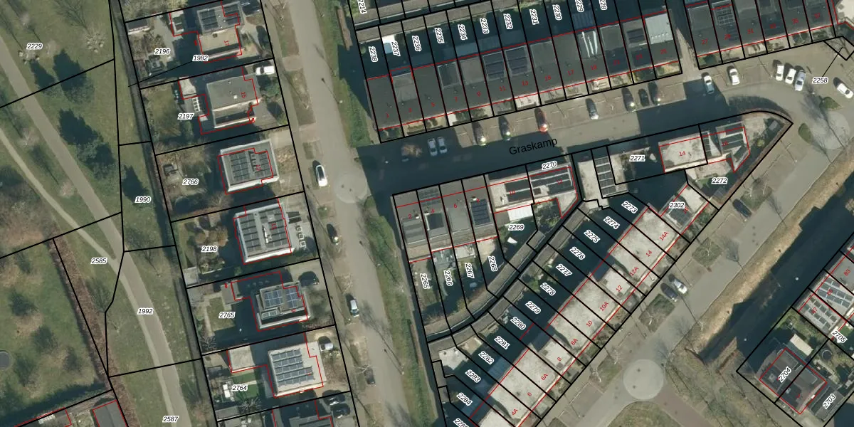 Het perceel waarop Graskamp 4 staat heeft een oppervlakte van 185 m². Dit is een middelgroot perceel. De perceeloppervlakte wordt geregistreerd door het Kadaster. Gedetailleerde informatie over de maten van dit perceel kunt u vinden in het rapport Kadastrale kaart met maatvoering van Graskamp 4.