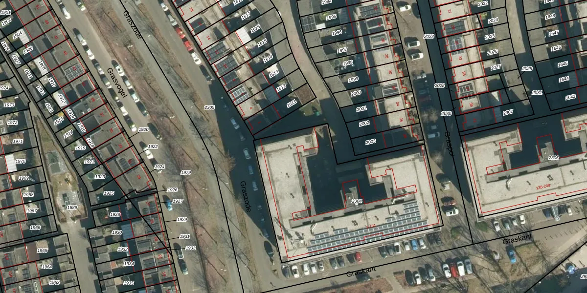 Graskant 103 is gelegen op kadastraal perceel STR03G2304. Deze kadastrale aanduiding is uniek en wordt gebruikt door het Kadaster om eigendomsrechten en andere zakelijke rechten vast te leggen. Het perceel maakt onderdeel uit van de kadastrale gemeente Strijp.