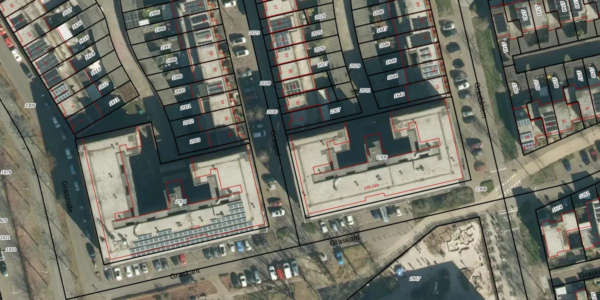 Graskant 135 is gelegen op kadastraal perceel STR03G2306. Deze kadastrale aanduiding is uniek en wordt gebruikt door het Kadaster om eigendomsrechten en andere zakelijke rechten vast te leggen. Het perceel maakt onderdeel uit van de kadastrale gemeente Strijp.