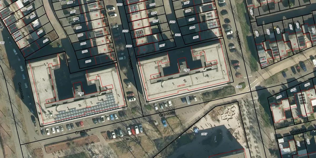 Graskant 207 is gelegen op kadastraal perceel STR03G2306. Deze kadastrale aanduiding is uniek en wordt gebruikt door het Kadaster om eigendomsrechten en andere zakelijke rechten vast te leggen. Het perceel maakt onderdeel uit van de kadastrale gemeente Strijp.