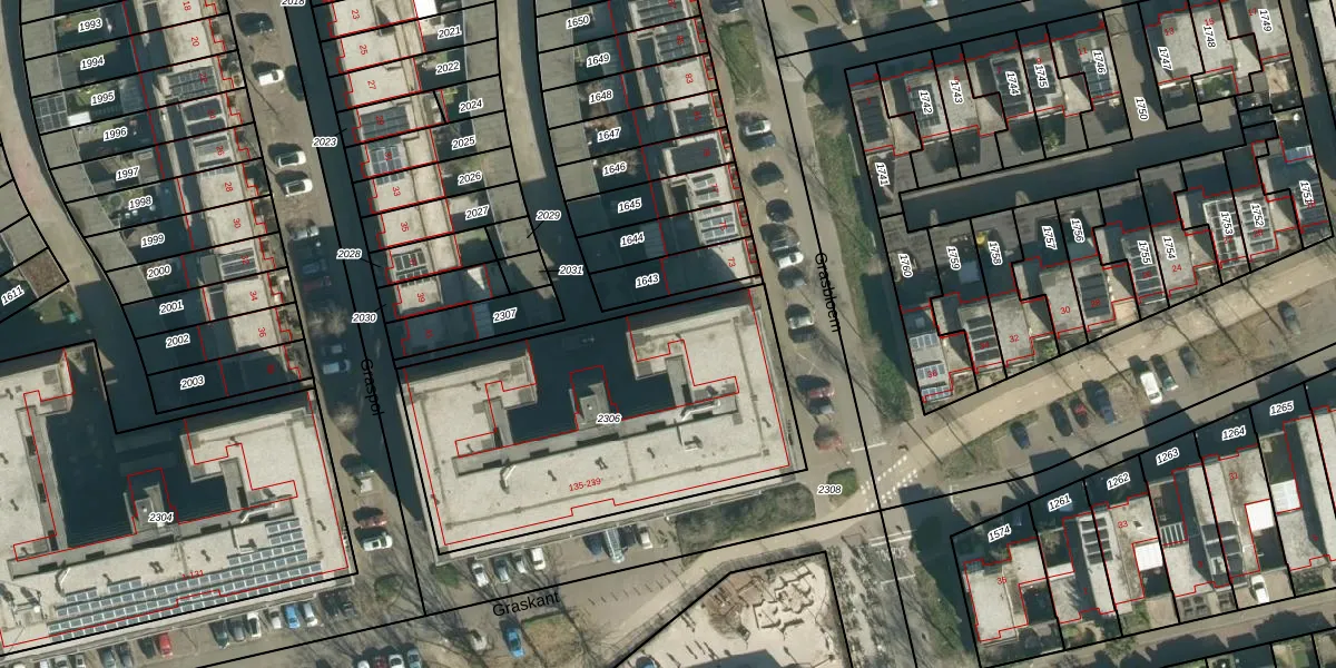 Graskant 217 is gelegen op kadastraal perceel STR03G2306. Deze kadastrale aanduiding is uniek en wordt gebruikt door het Kadaster om eigendomsrechten en andere zakelijke rechten vast te leggen. Het perceel maakt onderdeel uit van de kadastrale gemeente Strijp.