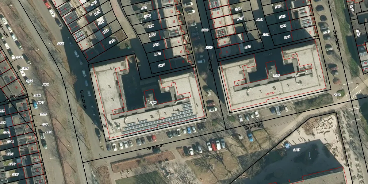 Het perceel waarop Graskant 51 staat heeft een oppervlakte van 1987 m². Dit is een zeer groot perceel. De perceeloppervlakte wordt geregistreerd door het Kadaster. Gedetailleerde informatie over de maten van dit perceel kunt u vinden in het rapport Kadastrale kaart met maatvoering van Graskant 51.