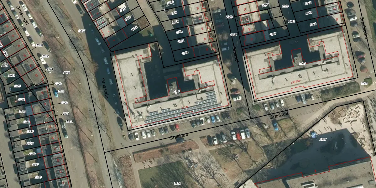 Het perceel waarop Graskant 85 staat heeft een oppervlakte van 1987 m². Dit is een zeer groot perceel. De perceeloppervlakte wordt geregistreerd door het Kadaster. Gedetailleerde informatie over de maten van dit perceel kunt u vinden in het rapport Kadastrale kaart met maatvoering van Graskant 85.