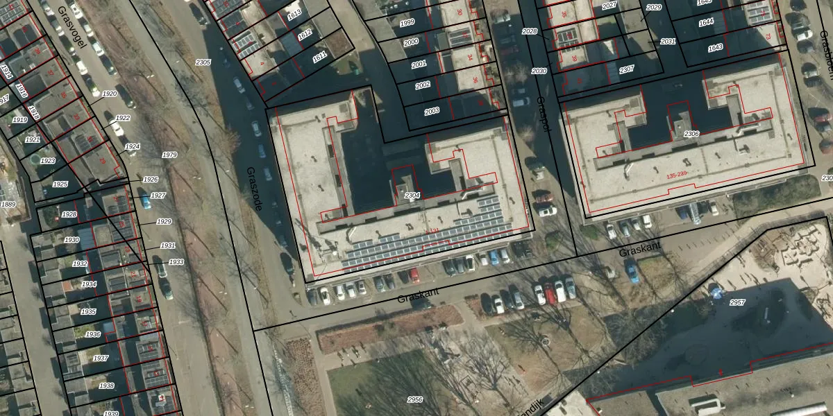 Het perceel waarop Graskant 87 staat heeft een oppervlakte van 1987 m². Dit is een zeer groot perceel. De perceeloppervlakte wordt geregistreerd door het Kadaster. Gedetailleerde informatie over de maten van dit perceel kunt u vinden in het rapport Kadastrale kaart met maatvoering van Graskant 87.