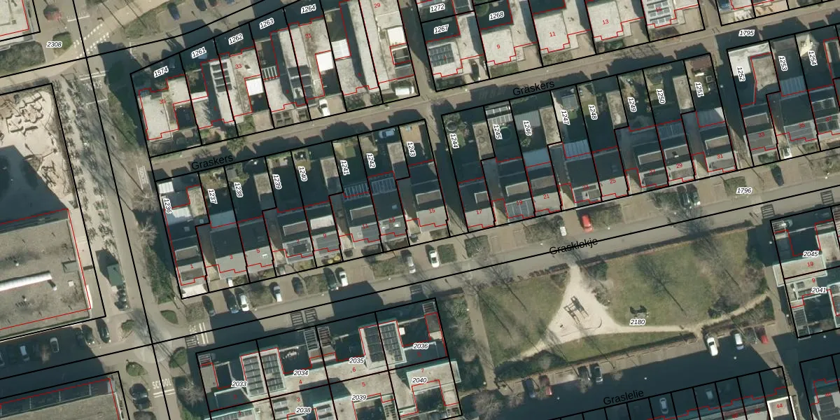 Gebruik de zoekbalk of klik op een perceel voor informatie over de adressen binnen dit perceel.