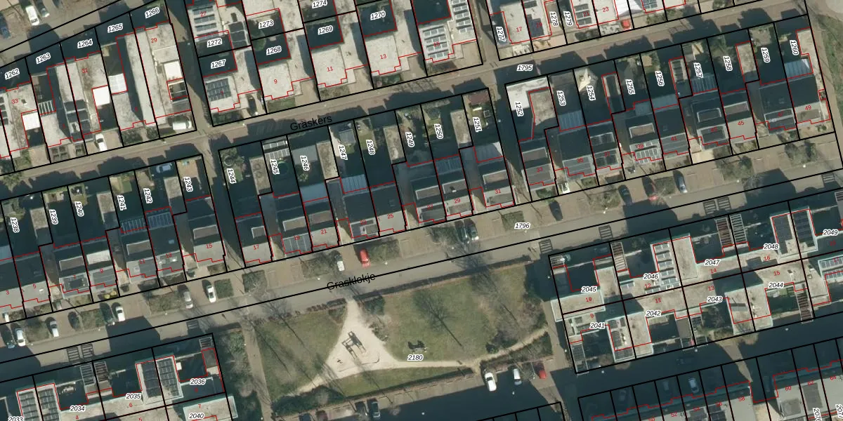 Gebruik de zoekbalk of klik op een perceel voor informatie over de adressen binnen dit perceel.