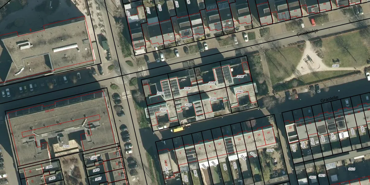Gebruik de zoekbalk of klik op een perceel voor informatie over de adressen binnen dit perceel.