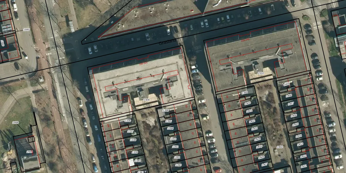 Grasland 114 is gelegen op kadastraal perceel STR03G2309. Deze kadastrale aanduiding is uniek en wordt gebruikt door het Kadaster om eigendomsrechten en andere zakelijke rechten vast te leggen. Het perceel maakt onderdeel uit van de kadastrale gemeente Strijp.