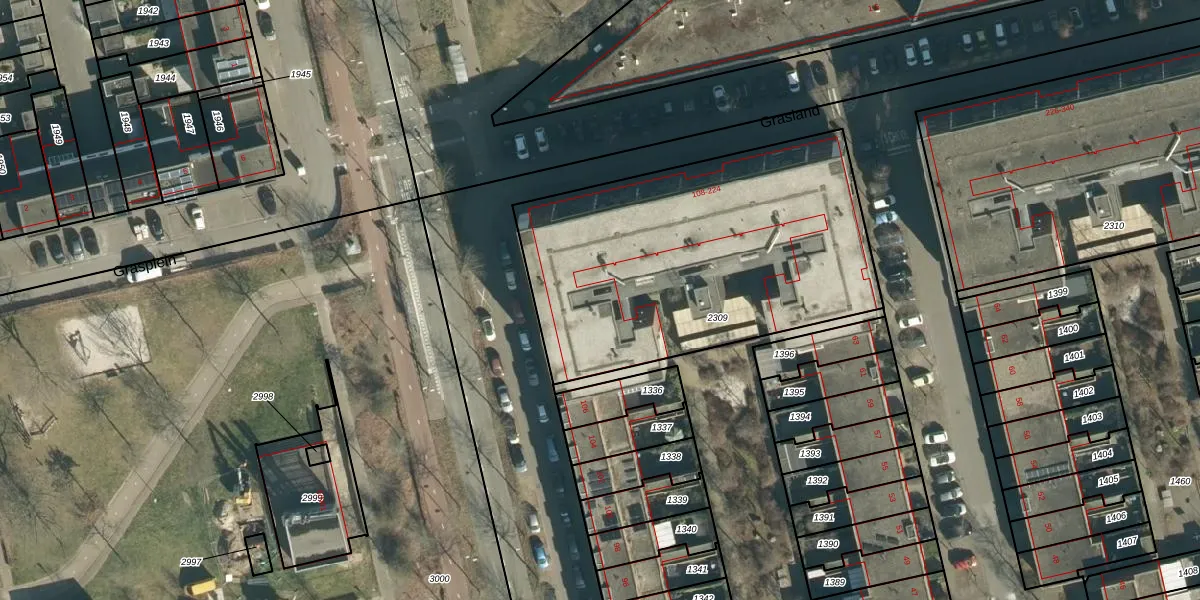 Het perceel waarop Grasland 180 staat heeft een oppervlakte van 1732 m². Dit is een zeer groot perceel. De perceeloppervlakte wordt geregistreerd door het Kadaster. Gedetailleerde informatie over de maten van dit perceel kunt u vinden in het rapport Kadastrale kaart met maatvoering van Grasland 180.