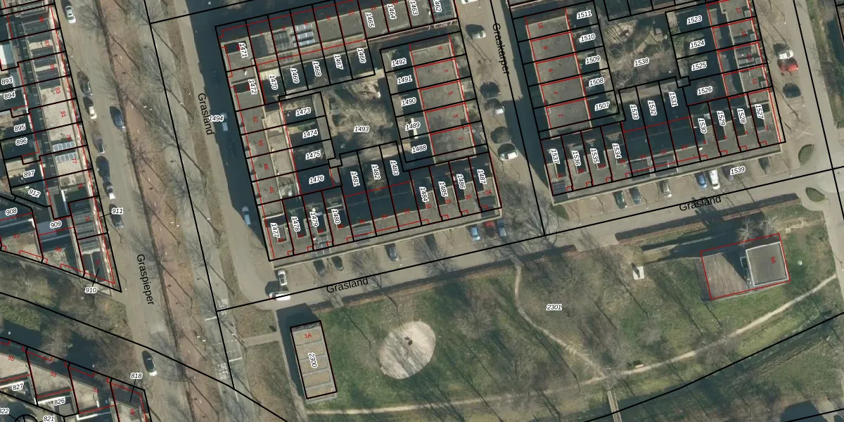 Het perceel waarop Grasland 30 staat heeft een oppervlakte van 65 m². Dit is een klein perceel. De perceeloppervlakte wordt geregistreerd door het Kadaster. Gedetailleerde informatie over de maten van dit perceel kunt u vinden in het rapport Kadastrale kaart met maatvoering van Grasland 30.