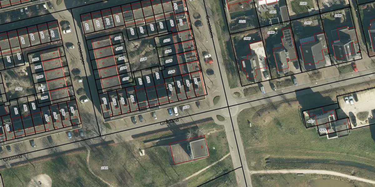 Het perceel waarop Grasland 4 staat heeft een oppervlakte van 65 m². Dit is een klein perceel. De perceeloppervlakte wordt geregistreerd door het Kadaster. Gedetailleerde informatie over de maten van dit perceel kunt u vinden in het rapport Kadastrale kaart met maatvoering van Grasland 4.