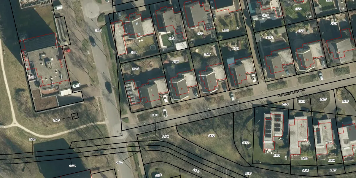 Grasleeuwerik 5 is gelegen op kadastraal perceel STR03G1766. Deze kadastrale aanduiding is uniek en wordt gebruikt door het Kadaster om eigendomsrechten en andere zakelijke rechten vast te leggen. Het perceel maakt onderdeel uit van de kadastrale gemeente Strijp.