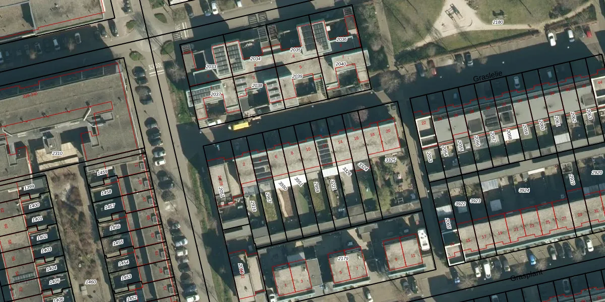 Gebruik de zoekbalk of klik op een perceel voor informatie over de adressen binnen dit perceel.