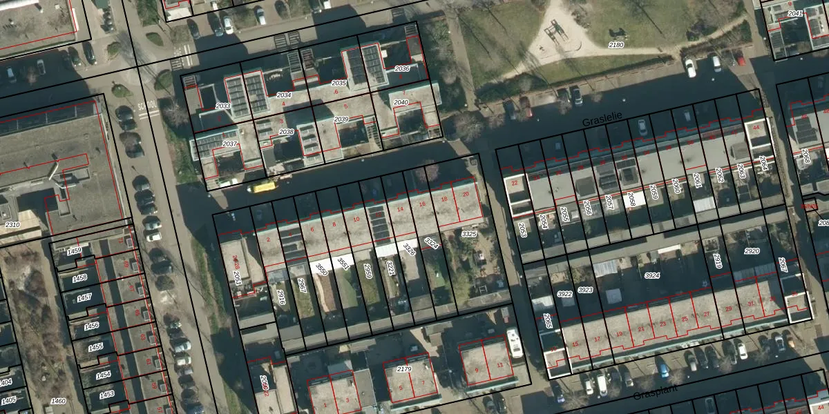 Graslelie 16 is gelegen op kadastraal perceel STR03G3324. Deze kadastrale aanduiding is uniek en wordt gebruikt door het Kadaster om eigendomsrechten en andere zakelijke rechten vast te leggen. Het perceel maakt onderdeel uit van de kadastrale gemeente Strijp.