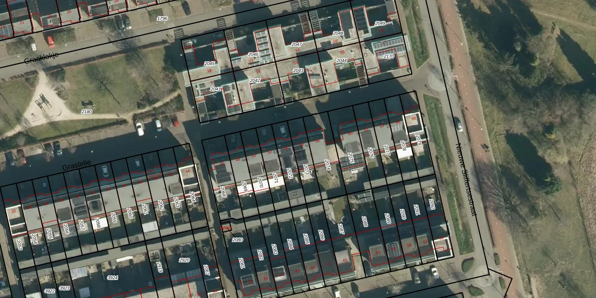 Gebruik de zoekbalk of klik op een perceel voor informatie over de adressen binnen dit perceel.