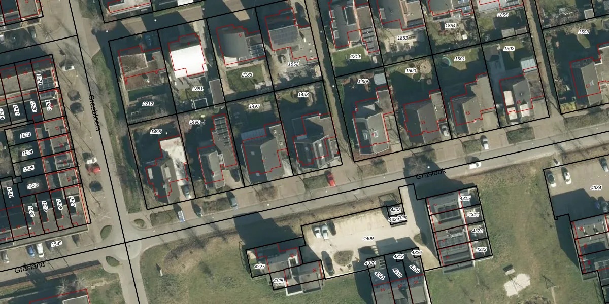 Het perceel waarop Graslook 7 staat heeft een oppervlakte van 469 m². Dit is een groot perceel. De perceeloppervlakte wordt geregistreerd door het Kadaster. Gedetailleerde informatie over de maten van dit perceel kunt u vinden in het rapport Kadastrale kaart met maatvoering van Graslook 7.
