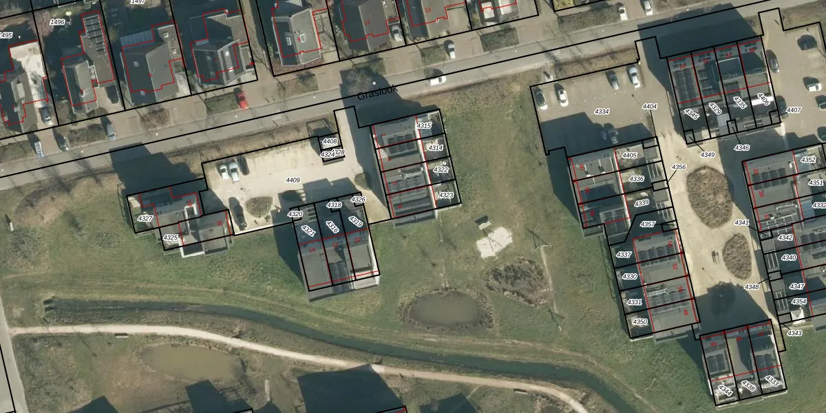 Het perceel waarop Graslook 8 staat heeft een oppervlakte van 103 m². Dit is een middelgroot perceel. De perceeloppervlakte wordt geregistreerd door het Kadaster. Gedetailleerde informatie over de maten van dit perceel kunt u vinden in het rapport Kadastrale kaart met maatvoering van Graslook 8.