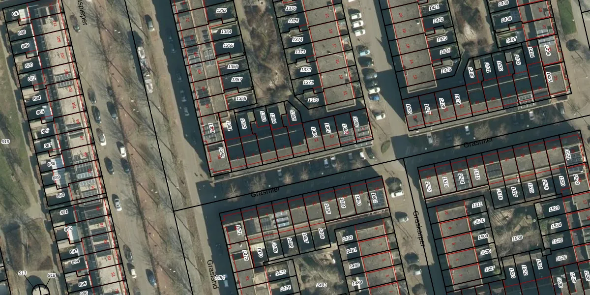 Het perceel waarop Grasmier 9 staat heeft een oppervlakte van 97 m². Dit is een klein perceel. De perceeloppervlakte wordt geregistreerd door het Kadaster. Gedetailleerde informatie over de maten van dit perceel kunt u vinden in het rapport Kadastrale kaart met maatvoering van Grasmier 9.