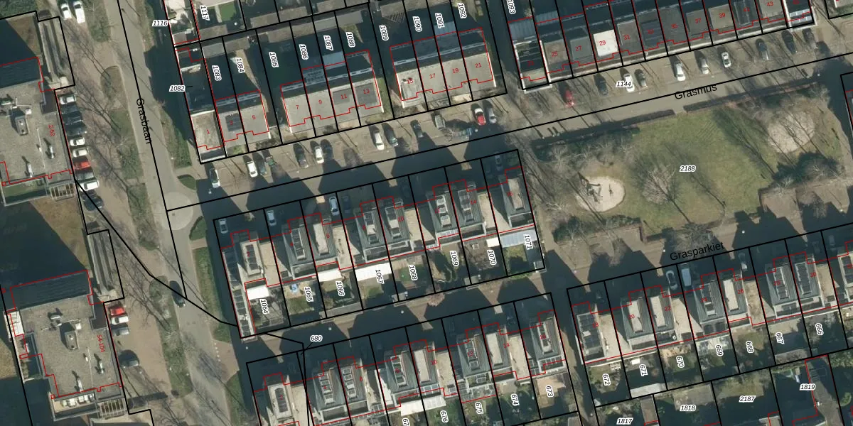 Grasmus 12 is gelegen op kadastraal perceel STR03G1069. Deze kadastrale aanduiding is uniek en wordt gebruikt door het Kadaster om eigendomsrechten en andere zakelijke rechten vast te leggen. Het perceel maakt onderdeel uit van de kadastrale gemeente Strijp.