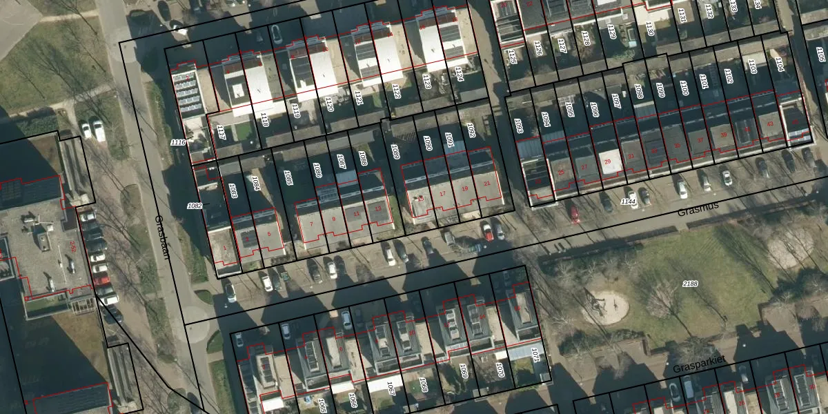 Grasmus 15 is gelegen op kadastraal perceel STR03G1089. Deze kadastrale aanduiding is uniek en wordt gebruikt door het Kadaster om eigendomsrechten en andere zakelijke rechten vast te leggen. Het perceel maakt onderdeel uit van de kadastrale gemeente Strijp.