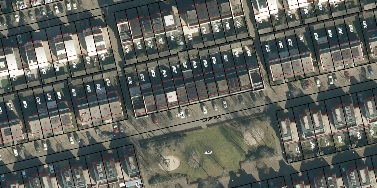 Het perceel waarop Grasmus 33 staat heeft een oppervlakte van 154 m². Dit is een middelgroot perceel. De perceeloppervlakte wordt geregistreerd door het Kadaster. Gedetailleerde informatie over de maten van dit perceel kunt u vinden in het rapport Kadastrale kaart met maatvoering van Grasmus 33.