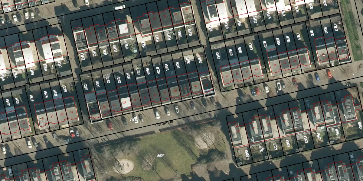 Het perceel waarop Grasmus 41 staat heeft een oppervlakte van 168 m². Dit is een middelgroot perceel. De perceeloppervlakte wordt geregistreerd door het Kadaster. Gedetailleerde informatie over de maten van dit perceel kunt u vinden in het rapport Kadastrale kaart met maatvoering van Grasmus 41.