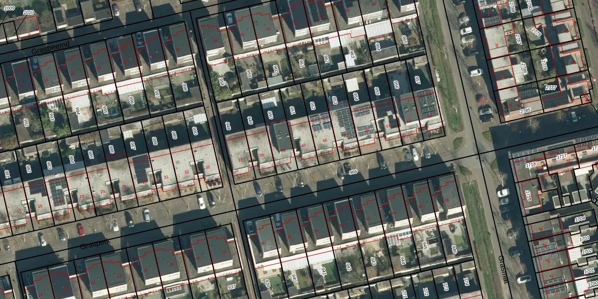 Het perceel waarop Grasperk 43 staat heeft een oppervlakte van 202 m². Dit is een middelgroot perceel. De perceeloppervlakte wordt geregistreerd door het Kadaster. Gedetailleerde informatie over de maten van dit perceel kunt u vinden in het rapport Kadastrale kaart met maatvoering van Grasperk 43.