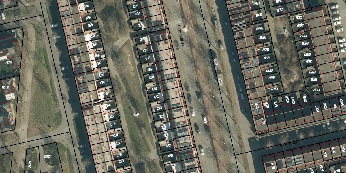 Gebruik de zoekbalk of klik op een perceel voor informatie over de adressen binnen dit perceel.