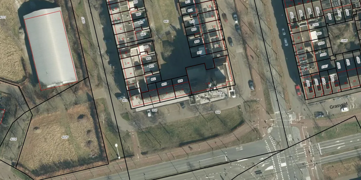Gebruik de zoekbalk of klik op een perceel voor informatie over de adressen binnen dit perceel.