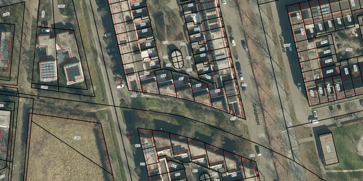Gebruik de zoekbalk of klik op een perceel voor informatie over de adressen binnen dit perceel.
