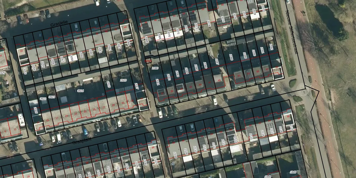 Gebruik de zoekbalk of klik op een perceel voor informatie over de adressen binnen dit perceel.