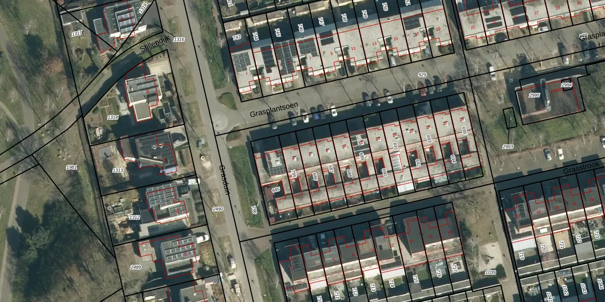 Gebruik de zoekbalk of klik op een perceel voor informatie over de adressen binnen dit perceel.