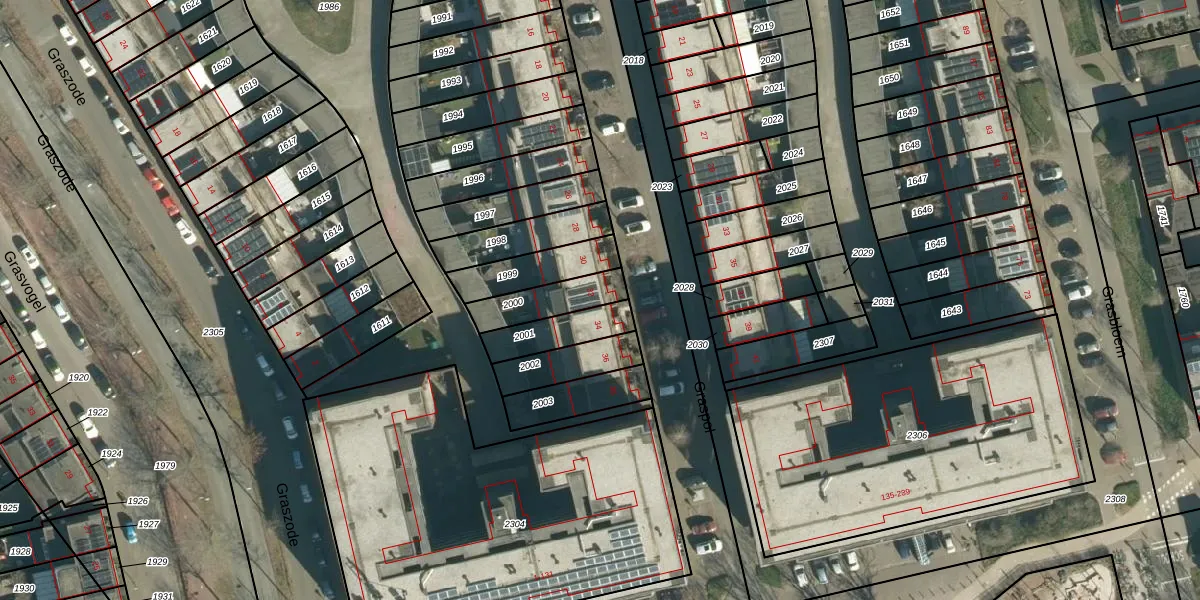 Graspol 32 is gelegen op kadastraal perceel STR03G2000. Deze kadastrale aanduiding is uniek en wordt gebruikt door het Kadaster om eigendomsrechten en andere zakelijke rechten vast te leggen. Het perceel maakt onderdeel uit van de kadastrale gemeente Strijp.