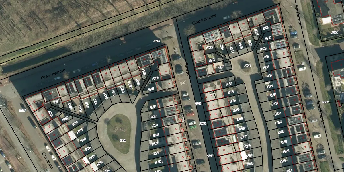 Gebruik de zoekbalk of klik op een perceel voor informatie over de adressen binnen dit perceel.