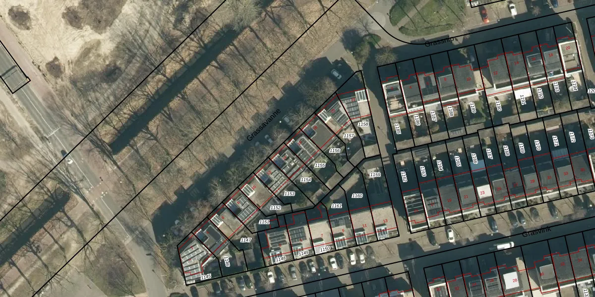 Het perceel waarop Grassavanne 16 staat heeft een oppervlakte van 159 m². Dit is een middelgroot perceel. De perceeloppervlakte wordt geregistreerd door het Kadaster. Gedetailleerde informatie over de maten van dit perceel kunt u vinden in het rapport Kadastrale kaart met maatvoering van Grassavanne 16.