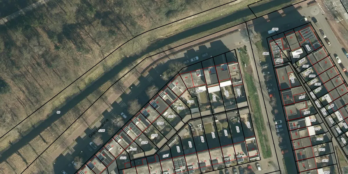 Grassavanne 46 is gelegen op kadastraal perceel STR03G1219. Deze kadastrale aanduiding is uniek en wordt gebruikt door het Kadaster om eigendomsrechten en andere zakelijke rechten vast te leggen. Het perceel maakt onderdeel uit van de kadastrale gemeente Strijp.