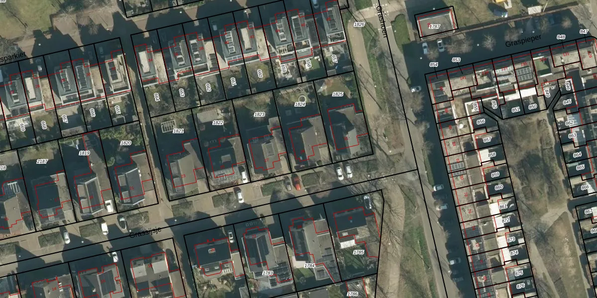 Het perceel waarop Grassijsje 29 staat heeft een oppervlakte van 402 m². Dit is een groot perceel. De perceeloppervlakte wordt geregistreerd door het Kadaster. Gedetailleerde informatie over de maten van dit perceel kunt u vinden in het rapport Kadastrale kaart met maatvoering van Grassijsje 29.