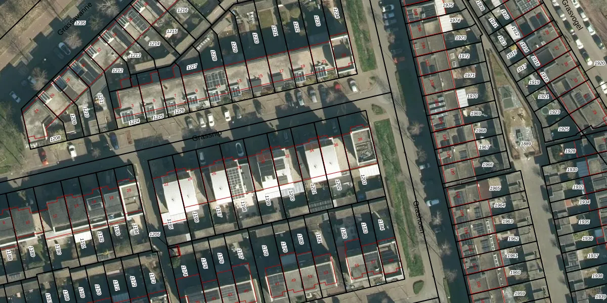 Het perceel waarop Grassnip 34 staat heeft een oppervlakte van 233 m². Dit is een middelgroot perceel. De perceeloppervlakte wordt geregistreerd door het Kadaster. Gedetailleerde informatie over de maten van dit perceel kunt u vinden in het rapport Kadastrale kaart met maatvoering van Grassnip 34.