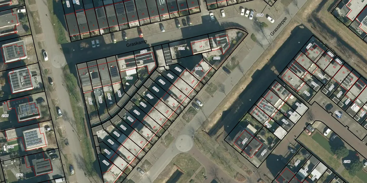 Gebruik de zoekbalk of klik op een perceel voor informatie over de adressen binnen dit perceel.