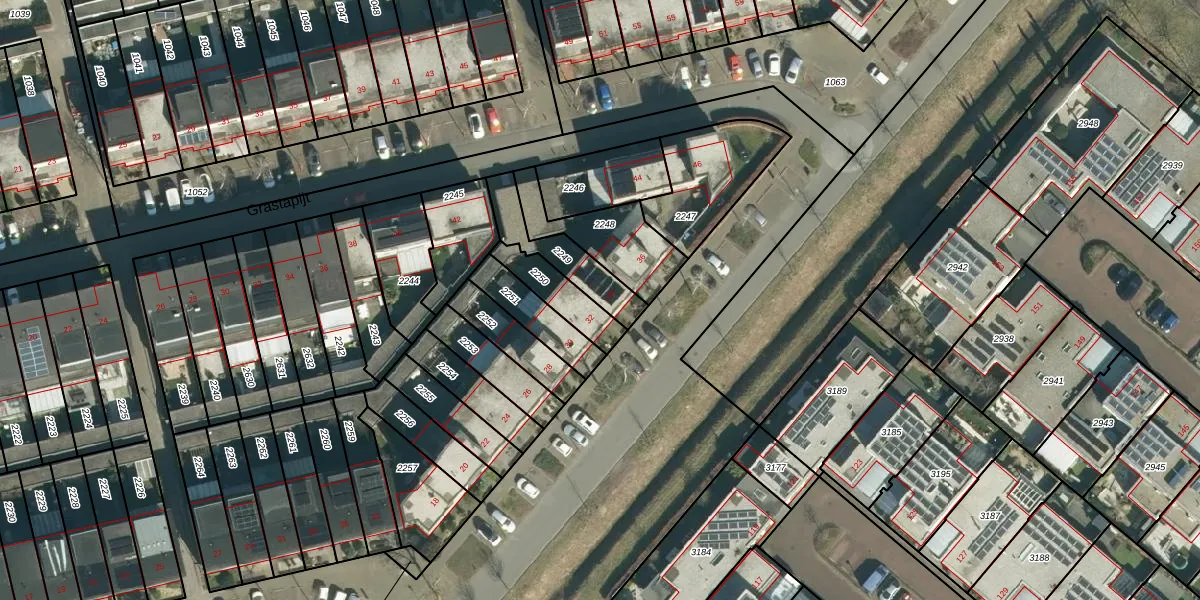 Grassteppe 34 is gelegen op kadastraal perceel STR03G2249. Deze kadastrale aanduiding is uniek en wordt gebruikt door het Kadaster om eigendomsrechten en andere zakelijke rechten vast te leggen. Het perceel maakt onderdeel uit van de kadastrale gemeente Strijp.