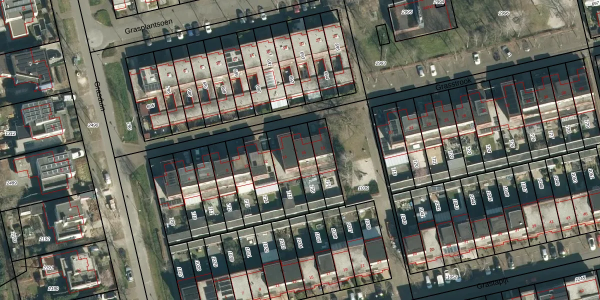 Grasstrook 16 is gelegen op kadastraal perceel STR03G716. Deze kadastrale aanduiding is uniek en wordt gebruikt door het Kadaster om eigendomsrechten en andere zakelijke rechten vast te leggen. Het perceel maakt onderdeel uit van de kadastrale gemeente Strijp.