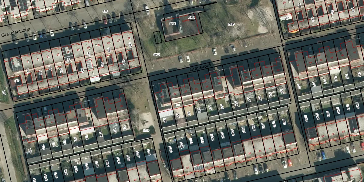 Grasstrook 24 is gelegen op kadastraal perceel STR03G721. Deze kadastrale aanduiding is uniek en wordt gebruikt door het Kadaster om eigendomsrechten en andere zakelijke rechten vast te leggen. Het perceel maakt onderdeel uit van de kadastrale gemeente Strijp.