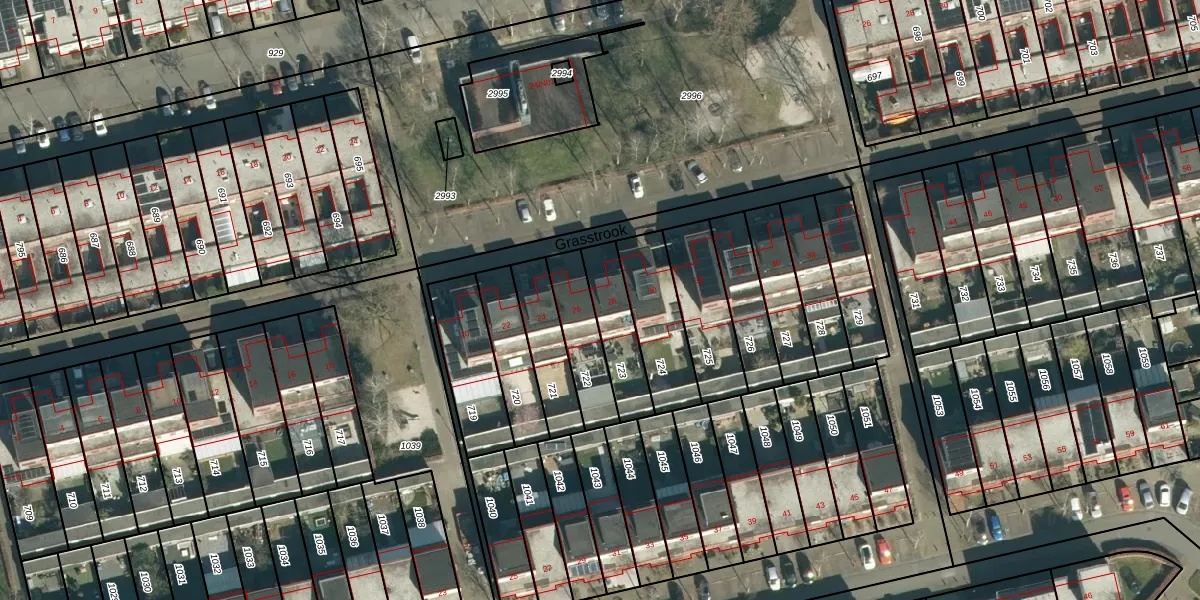 Gebruik de zoekbalk of klik op een perceel voor informatie over de adressen binnen dit perceel.