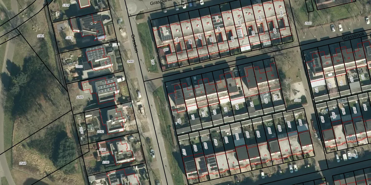 Gebruik de zoekbalk of klik op een perceel voor informatie over de adressen binnen dit perceel.