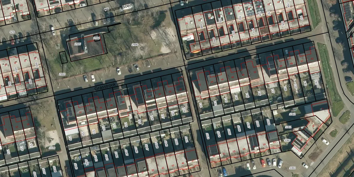 Grasstrook 40 is gelegen op kadastraal perceel STR03G729. Deze kadastrale aanduiding is uniek en wordt gebruikt door het Kadaster om eigendomsrechten en andere zakelijke rechten vast te leggen. Het perceel maakt onderdeel uit van de kadastrale gemeente Strijp.