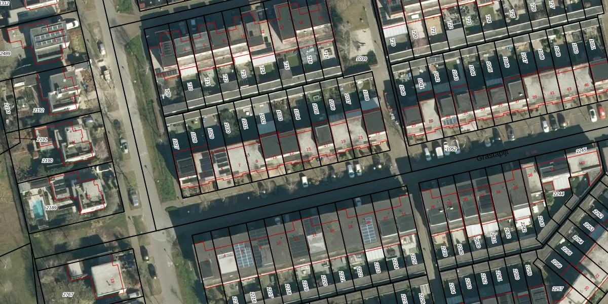 Grastapijt 15 is gelegen op kadastraal perceel STR03G1034. Deze kadastrale aanduiding is uniek en wordt gebruikt door het Kadaster om eigendomsrechten en andere zakelijke rechten vast te leggen. Het perceel maakt onderdeel uit van de kadastrale gemeente Strijp.